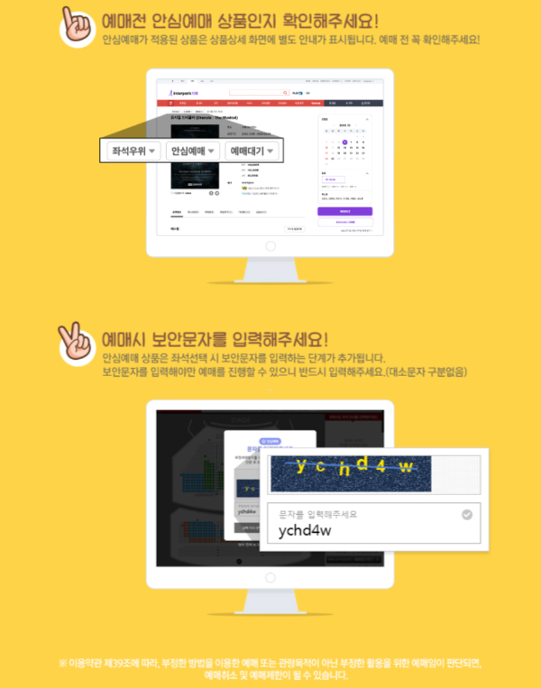 인터파크 티켓에서는 공정한 예매환경을 제공하고 부정예매를 방지하는 안심예매 서비스입니다.