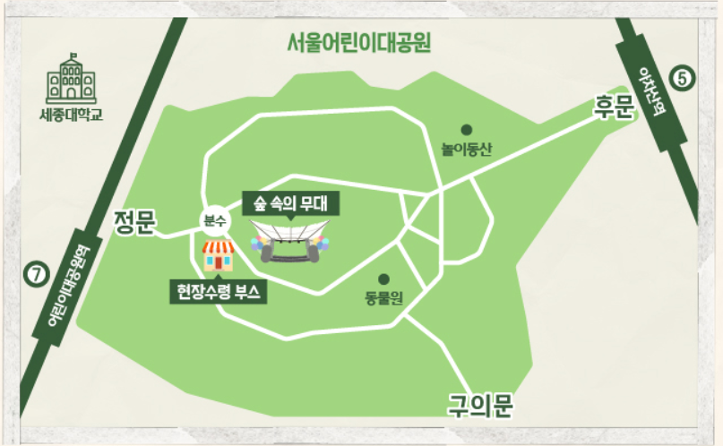 ● 입장 팔찌 수령처 위치: 어린이대공원 내 열린 무대